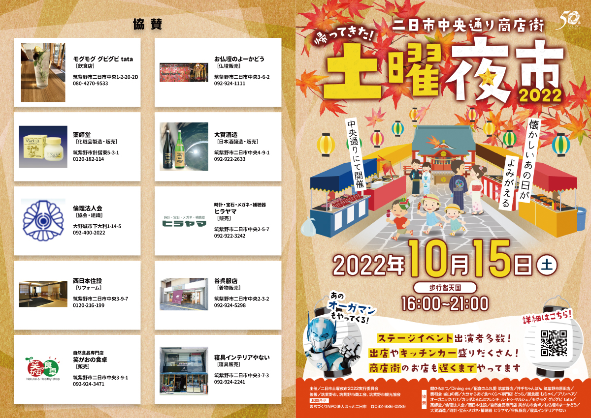 この土曜夜市を筑紫野市市制50周年にあわせて 復活開催することにしました。